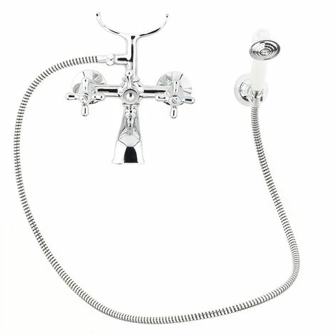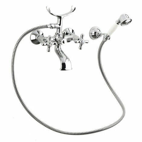 Laissez-vous séduire par le mélangeur pour baignoire avec douchette 150mm et support, Chrome et Blanc (IR023).
