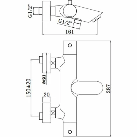 Mitigeur thermostatique extérieur pour bain / douche complet avec inverseur | Paffoni Rubinetteria Light LIQ023CR